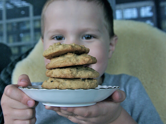 Then I had a request from the Littles- they wanted to make something for Daddy- since his bike was stolen and he was slightly out of sorts and cranky last night- so from rhubarb we moved onto The Mr.'s favourite peanut butter cookies- you can find my Mom's no fail recipe here- it is a family favourite!