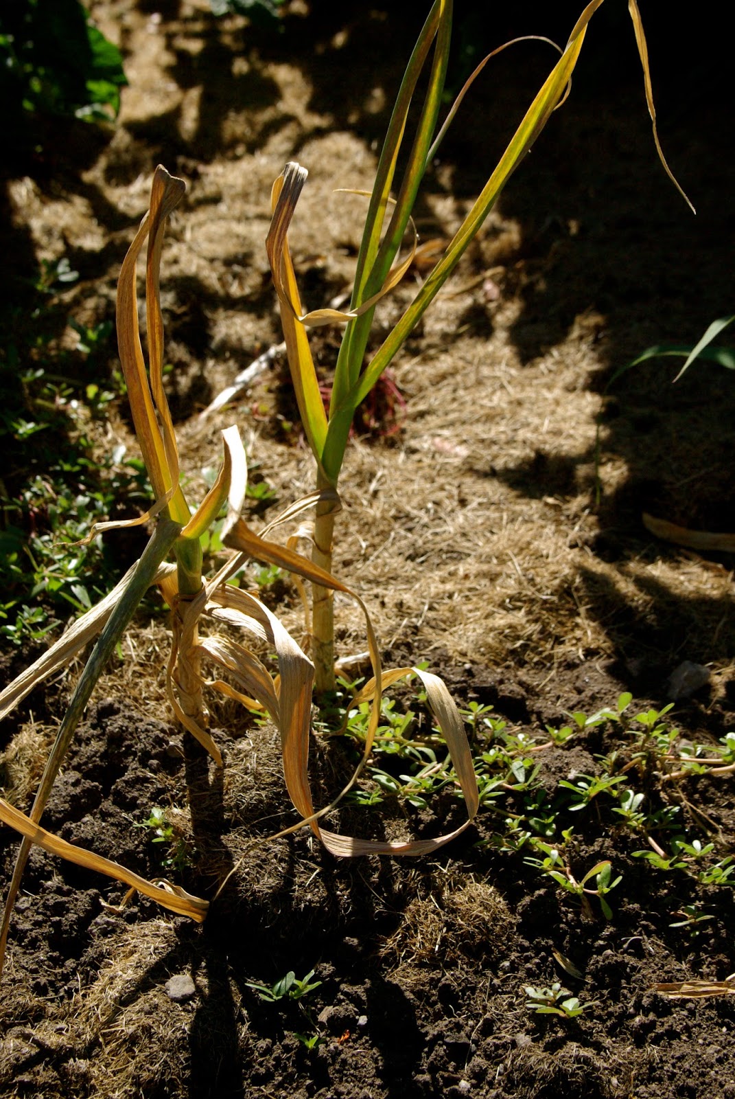 The Boy has been his Poppa's shadow since we got here- super involved in all the construction happening next door and now following Poppa into the garden to harvest the end of that giant garlic. Our family loves garlic- it is sort of hoarded a bit like treasure at our house because once it's gone- it's gone! There are many months in between growing season and even the Farmer's Market often runs out mid Spring.
